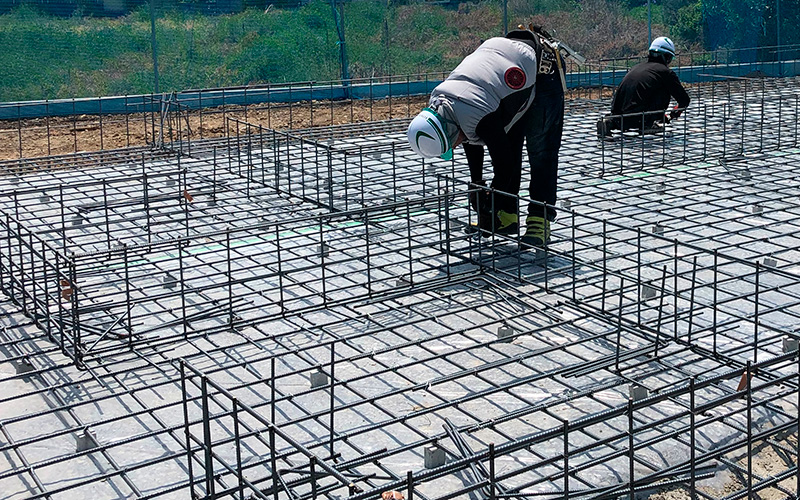 弊社工場内でユニット鉄筋の加工を行います。
